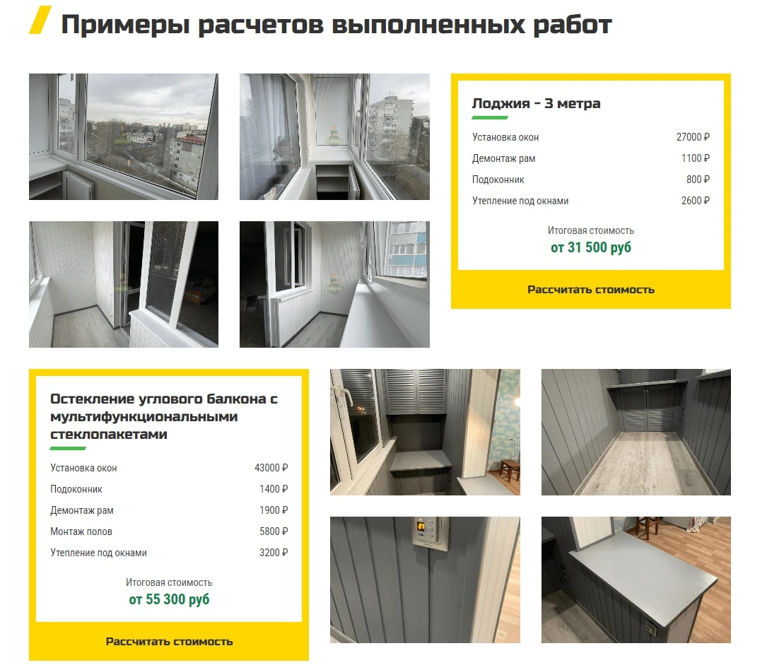 - На страницах услуг вывели фото выполненных работ.
