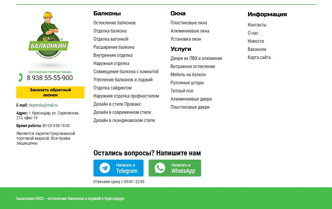 - Вынесли в футер ссылки страниц услуг для улучшения перелинковки. Добавили ссылки на мессенджеры.