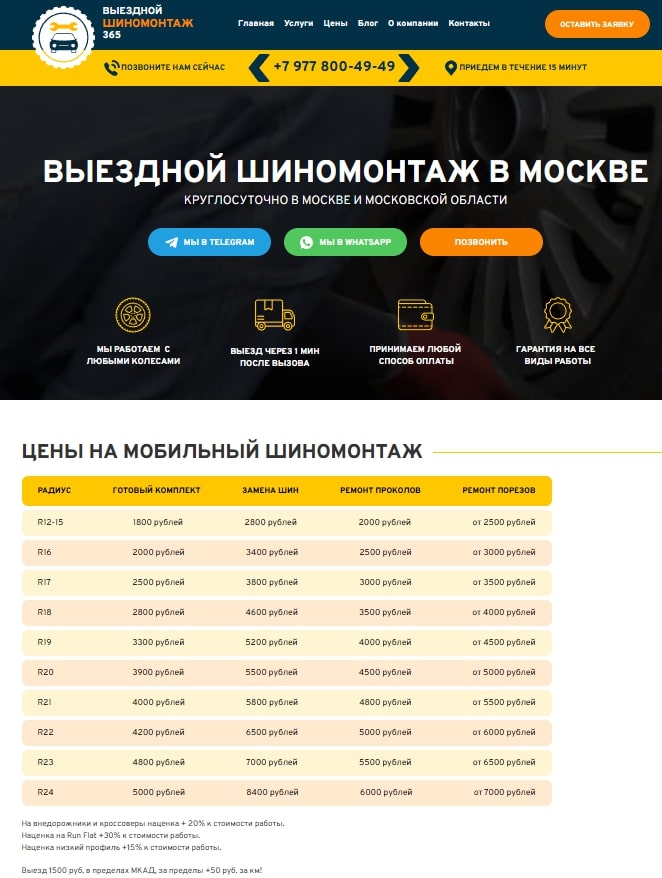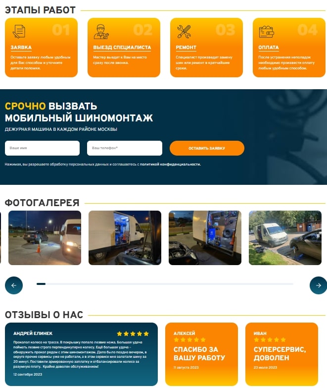 - Создать новый сайт, поскольку на момент начала работы https://shinomontaj365.tilda.ws/ у клиента был сайт собранный на конструкторе Tilda. Создать новые страницы и заполнить их контентом;
